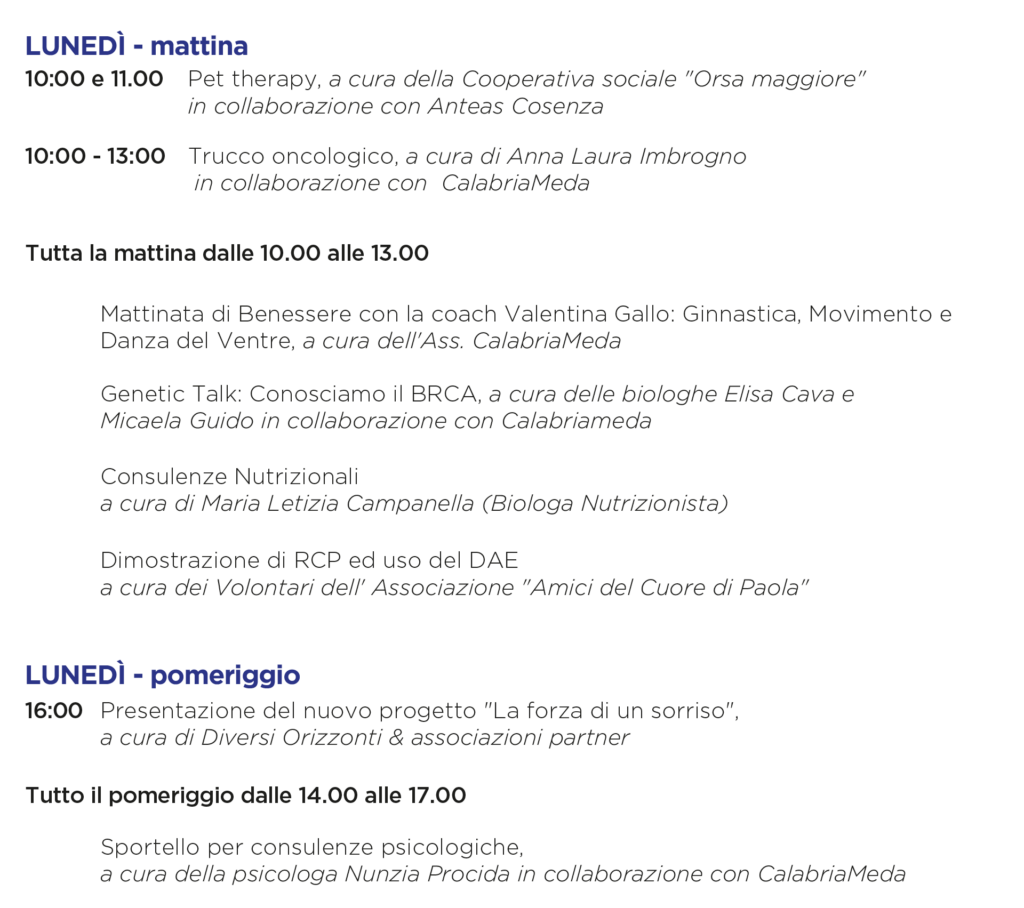 Nato dalla collaborazione tra Comune di San Lucido e le associazioni Libertini, Diversi Orizzonti, Demetra e dalla LILT Cosenza, con il supporto di Komen Italia.