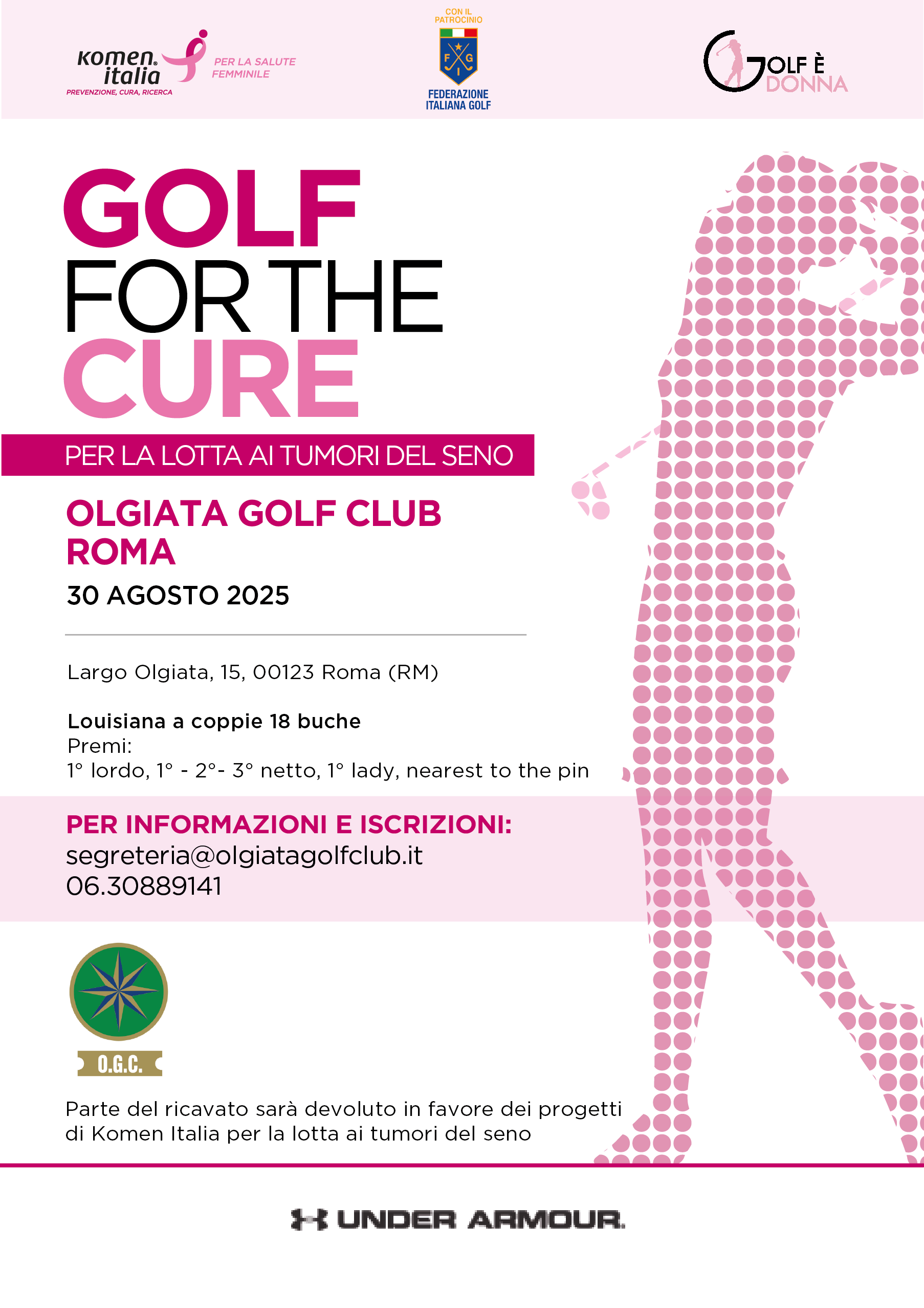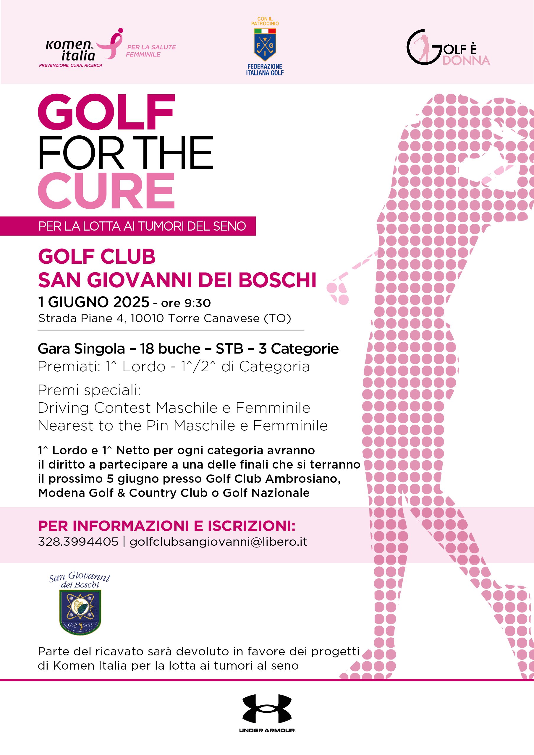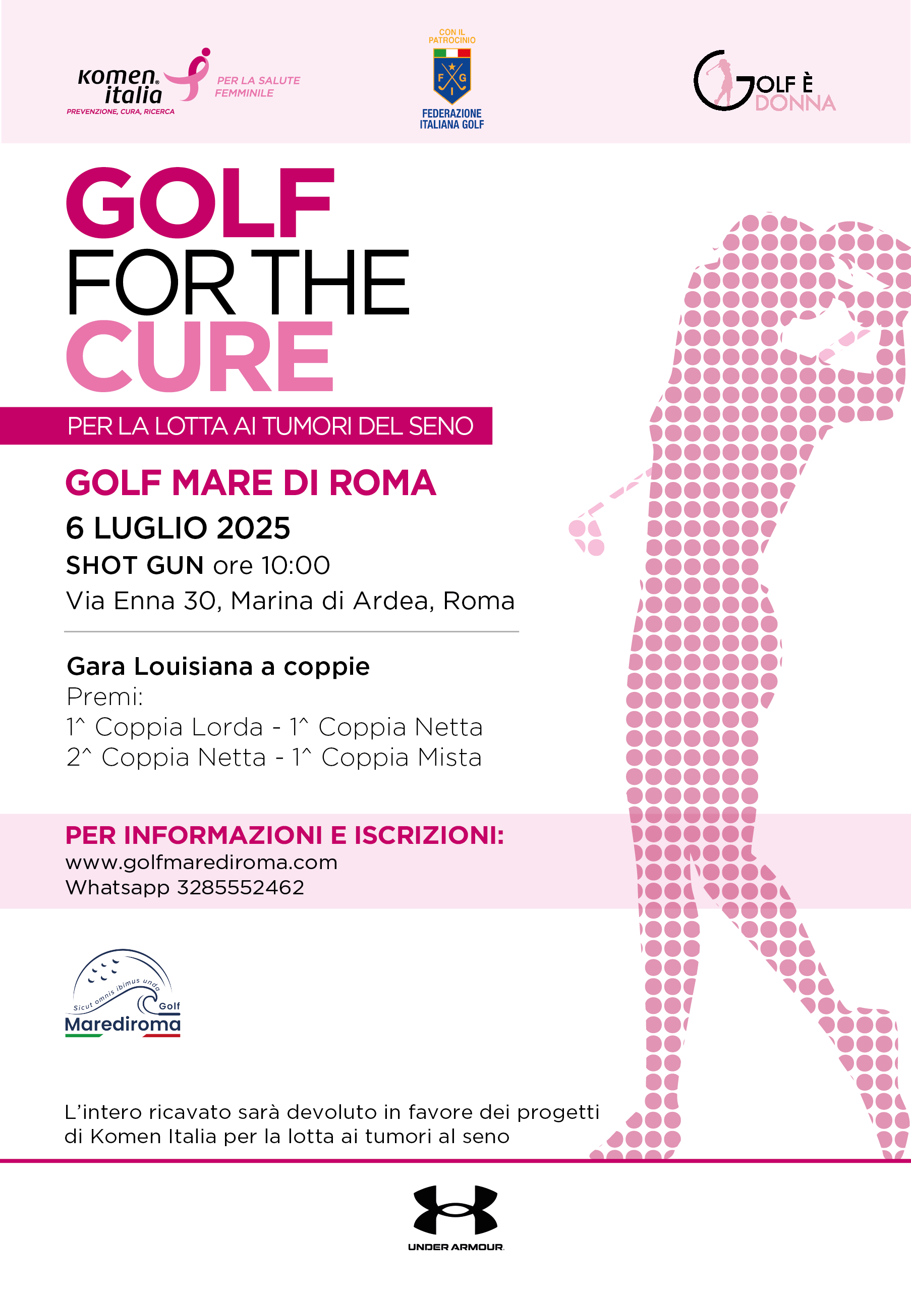 Il progetto, nato nel 2017 da un’idea di Rita Menta, membro del Comitato Regionale Lombardia e Donna in Rosa, propone gare di golf per i giocatori tesserati e open day con i maestri del Club per avvicinare anche il pubblico meno esperto alla pratica del golf. Durante le giornate la Komen Italia svolge anche un’attività di sensibilizzazione sui corretti stili di vita e sull’importanza della prevenzione.
