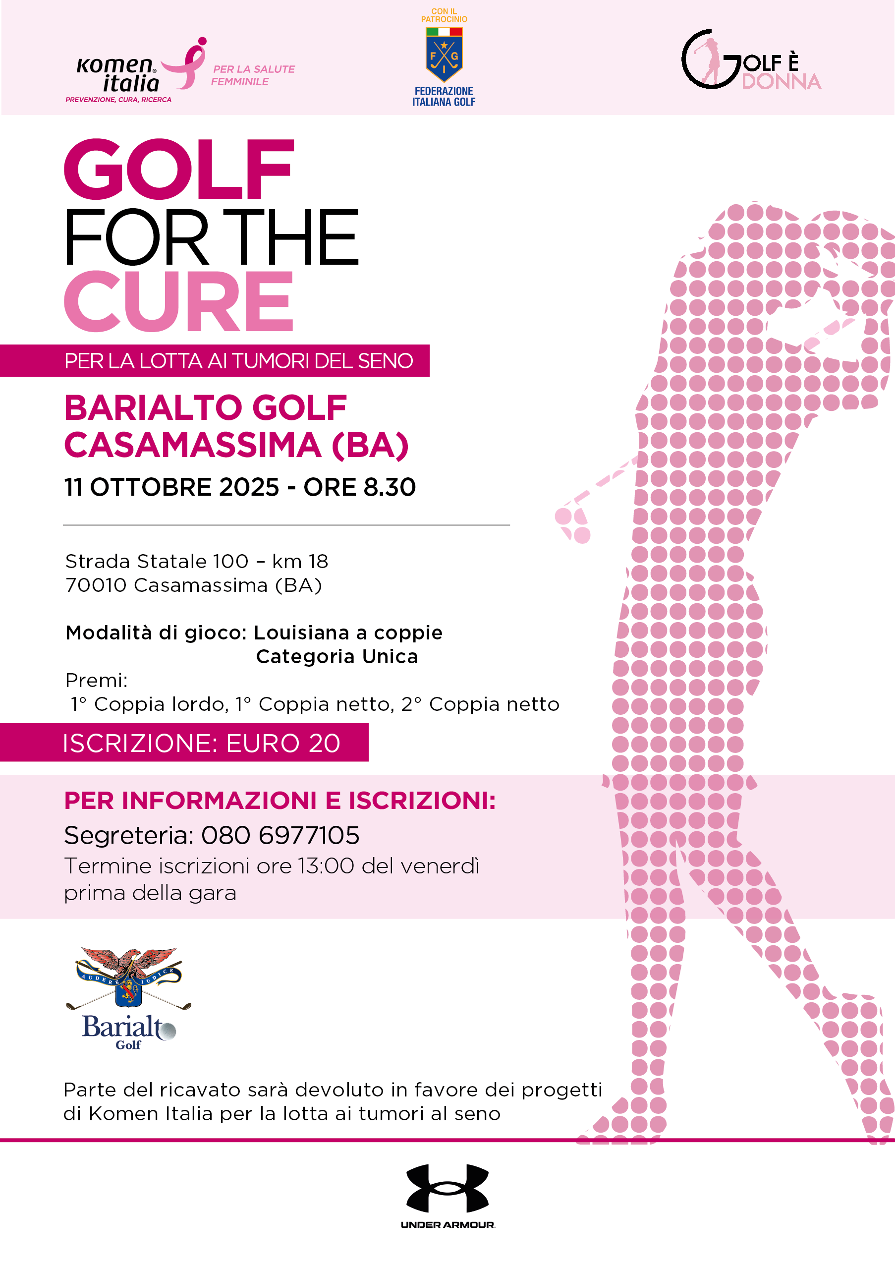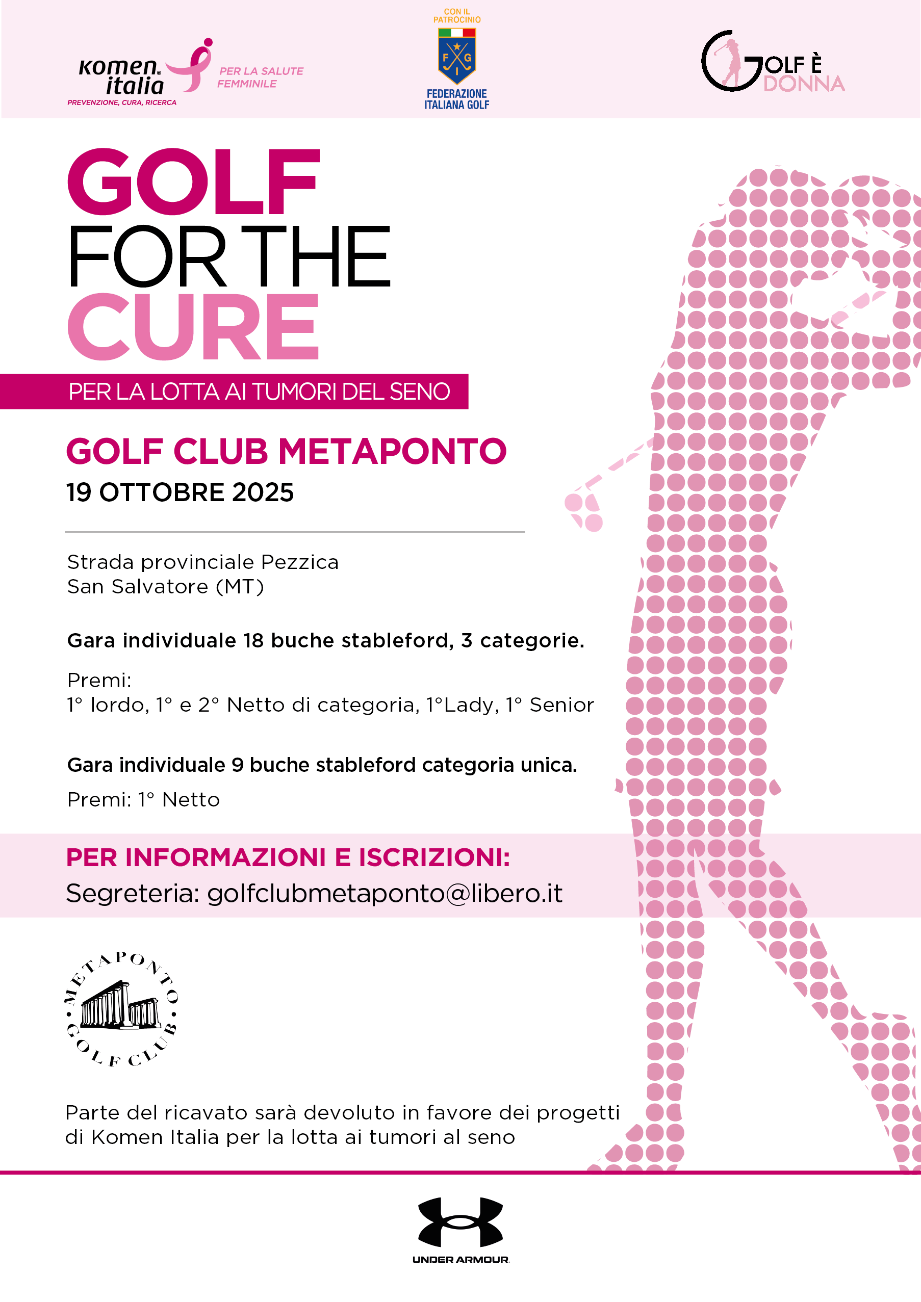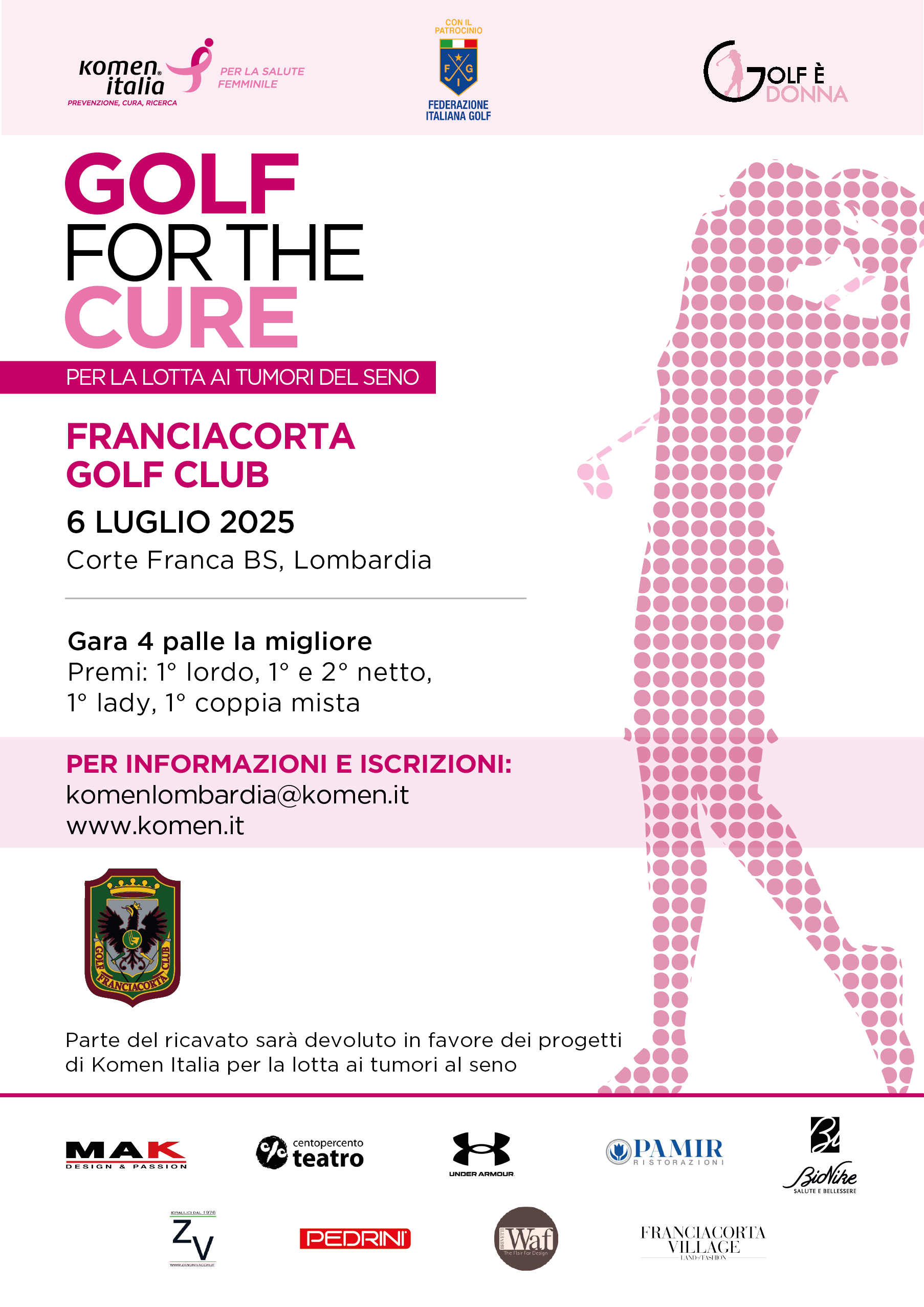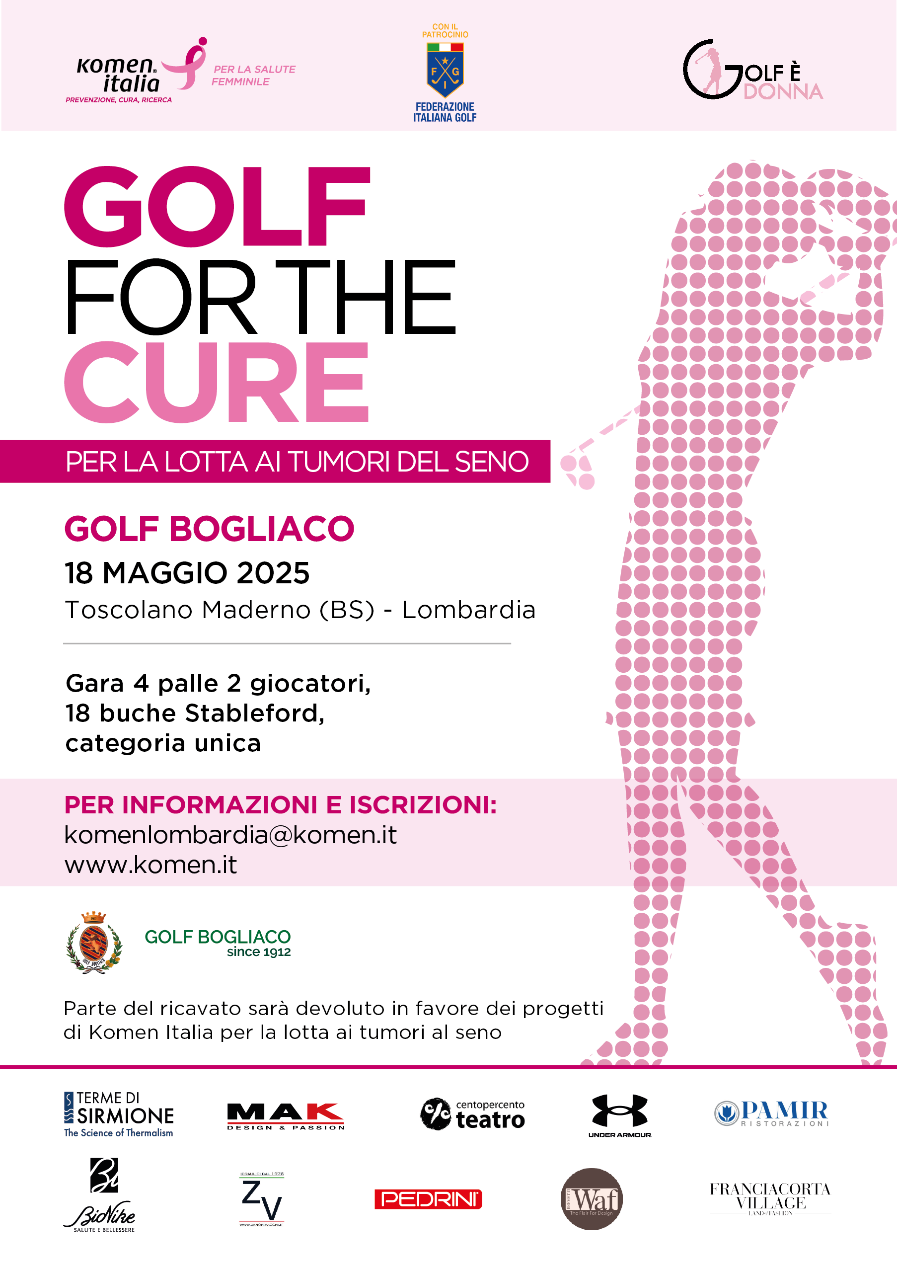 Il progetto, nato nel 2017 da un’idea di Rita Menta, membro del Comitato Regionale Lombardia e Donna in Rosa, propone gare di golf per i giocatori tesserati e open day con i maestri del Club per avvicinare anche il pubblico meno esperto alla pratica del golf. Durante le giornate la Komen Italia svolge anche un’attività di sensibilizzazione sui corretti stili di vita e sull’importanza della prevenzione.