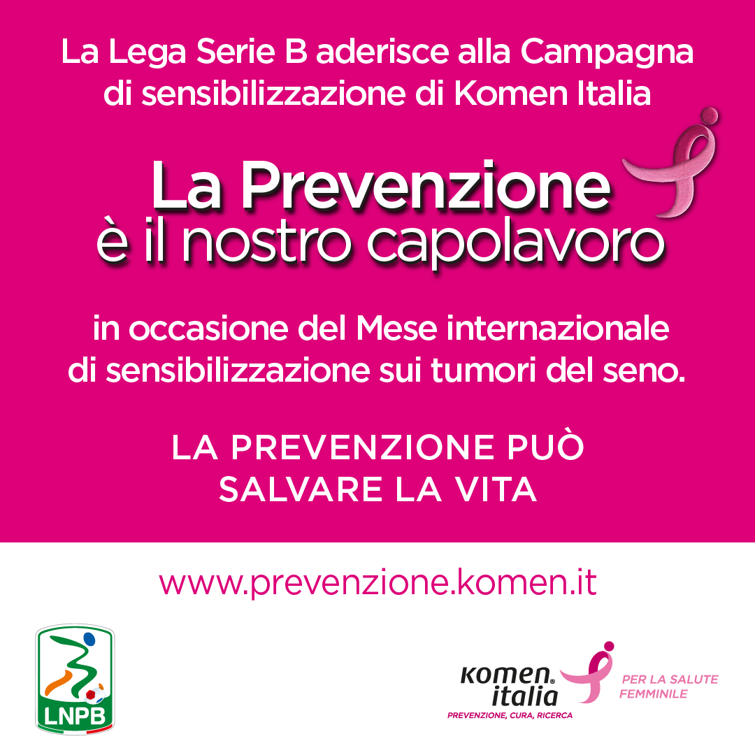 Durante la 7a giornata della Serie BKT, la Lega Serie B si farà promotrice e portavoce della campagna di Komen Italia attraverso una serie di attività quali messaggio speaker negli stadi, contenuti social